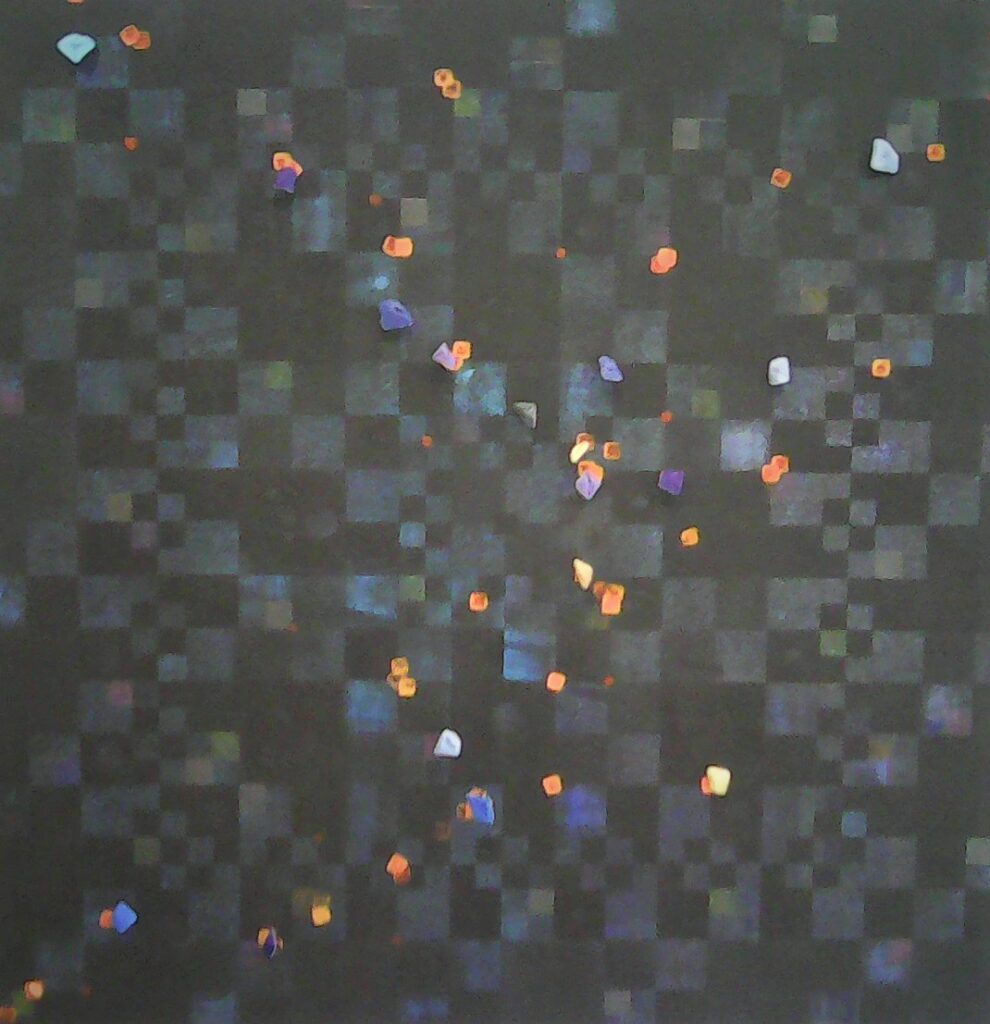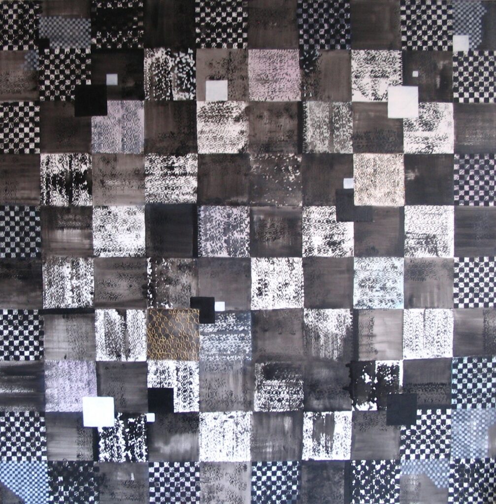 Le motif géométrique du carré est le format privilégié de mon travail plastique et la base de ma recherche artistique. Ce choix plastique, quasi obsessionnel a pour origine une “Lullaby” (berceuse) visuelle et onirique, c’est un questionnement sur l’angoisse, un voyage dans l’Entre-Deux, entre l’attirance et la répulsion.